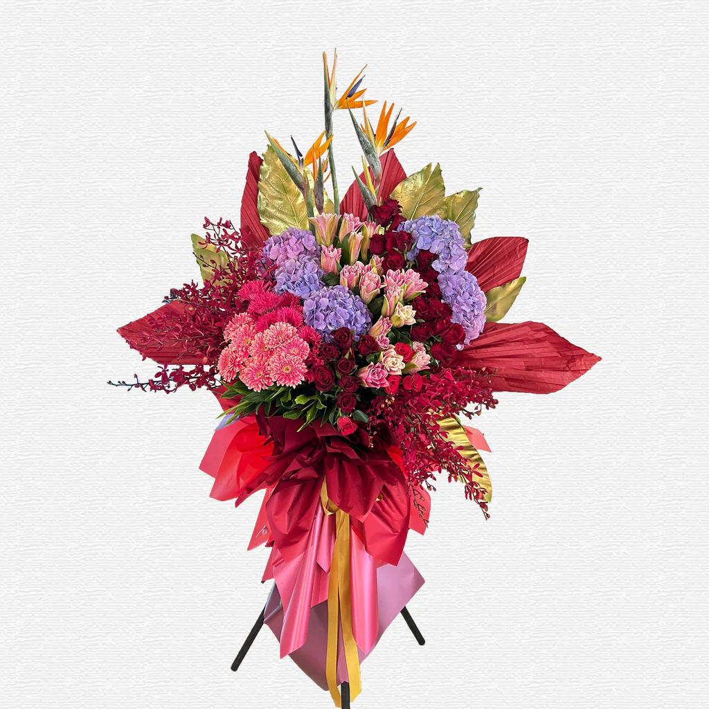 Bird Of Paradise + Hydrangea Purple + Gerbera + Orchid + Rose Red