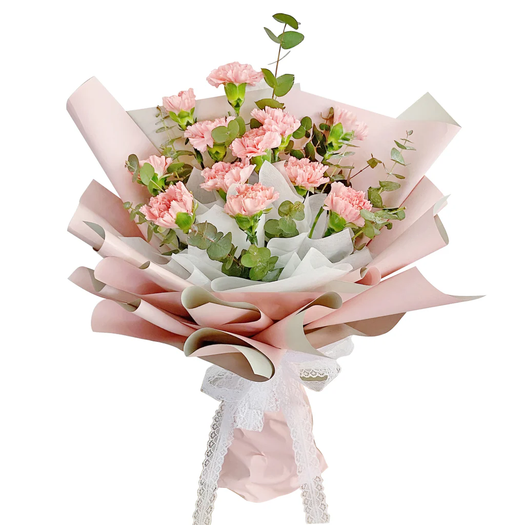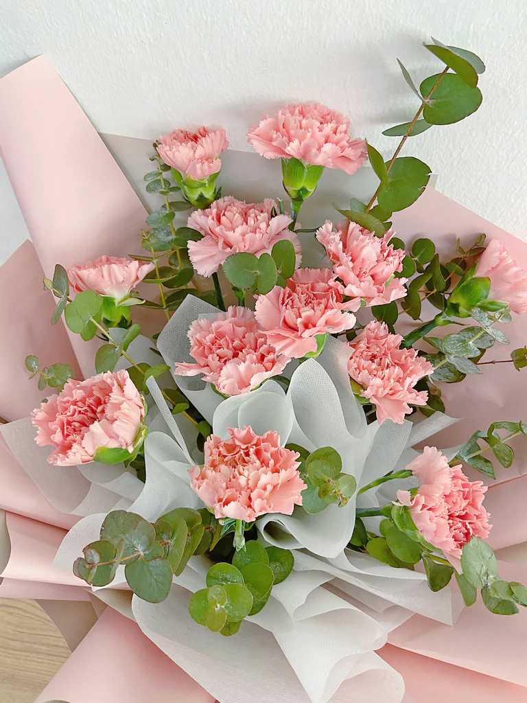 Assemble by soft pink carnation touched up with some foliage.