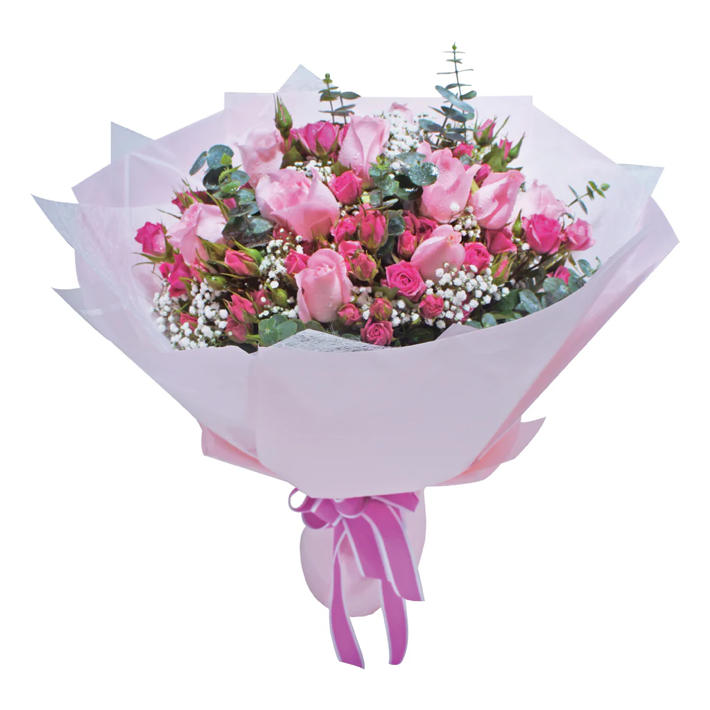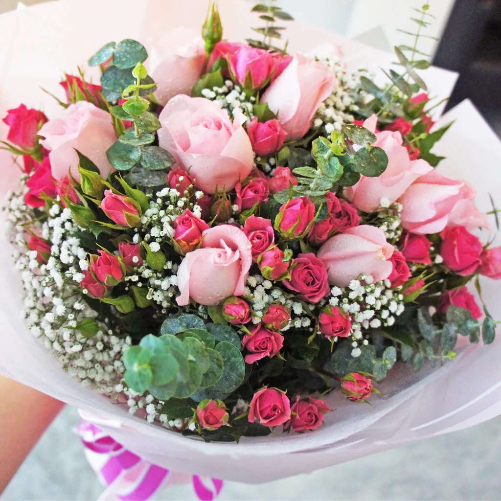 Here’s special bouquet made of from roses and baby breath for the one you called love.