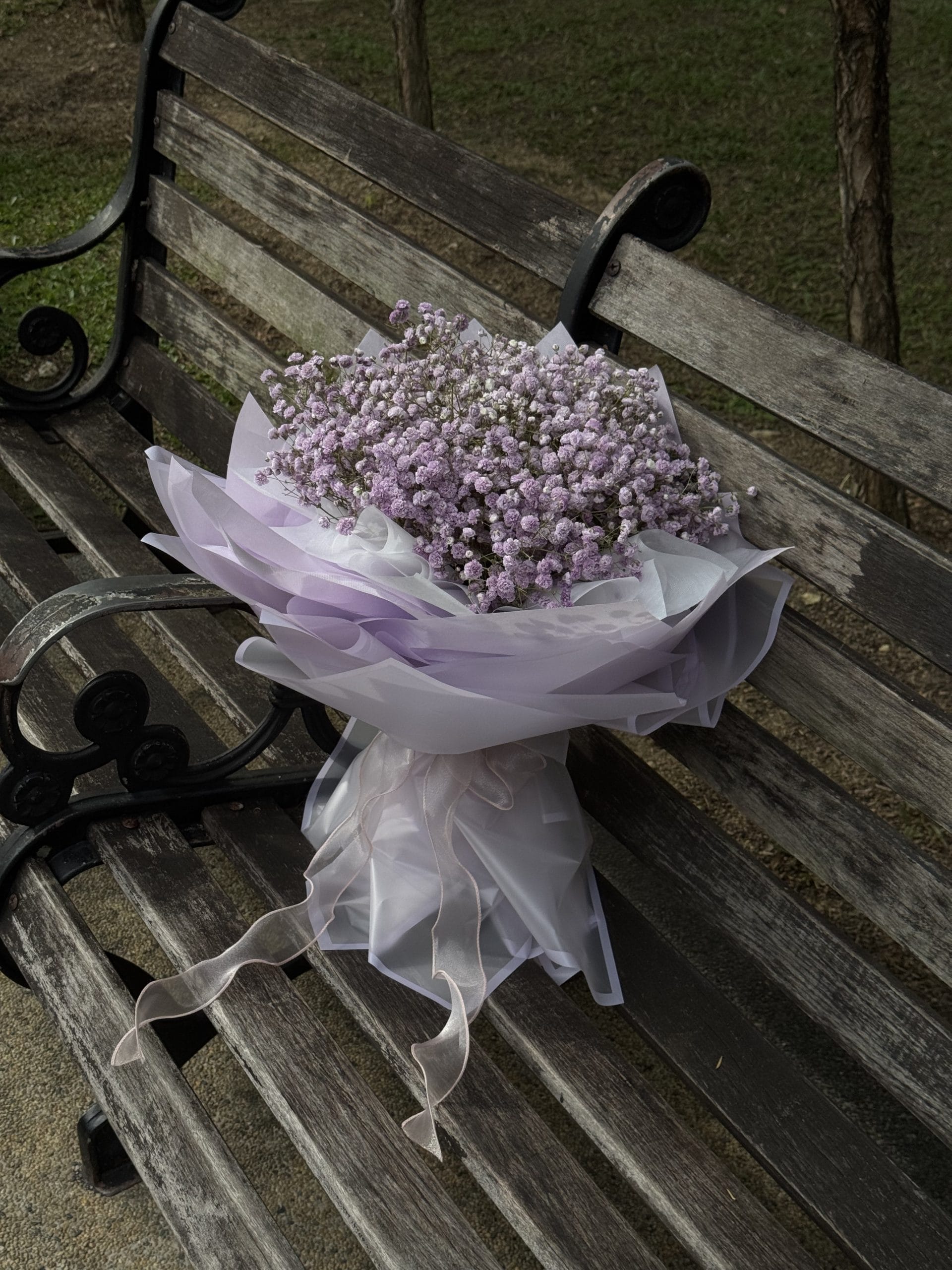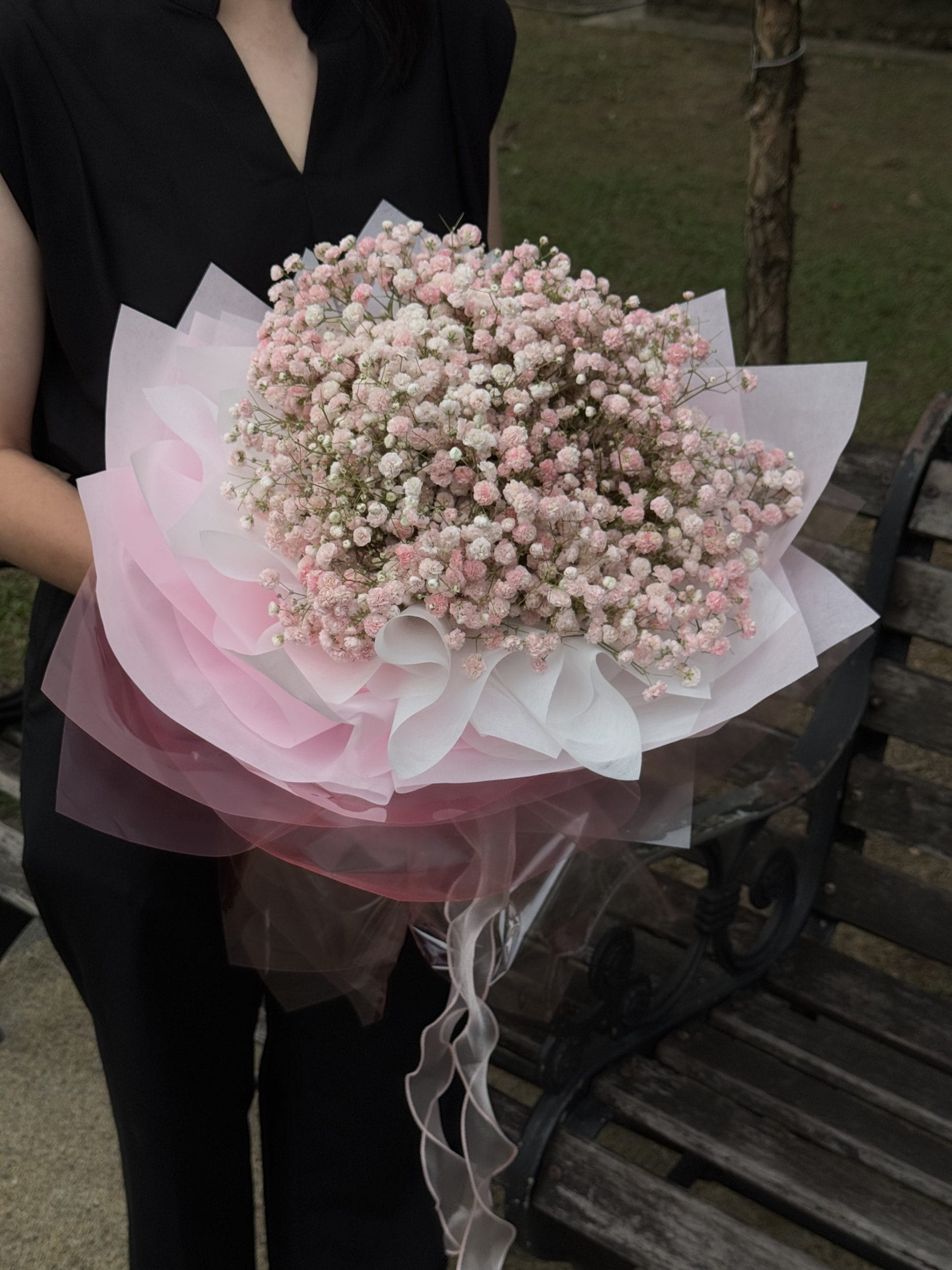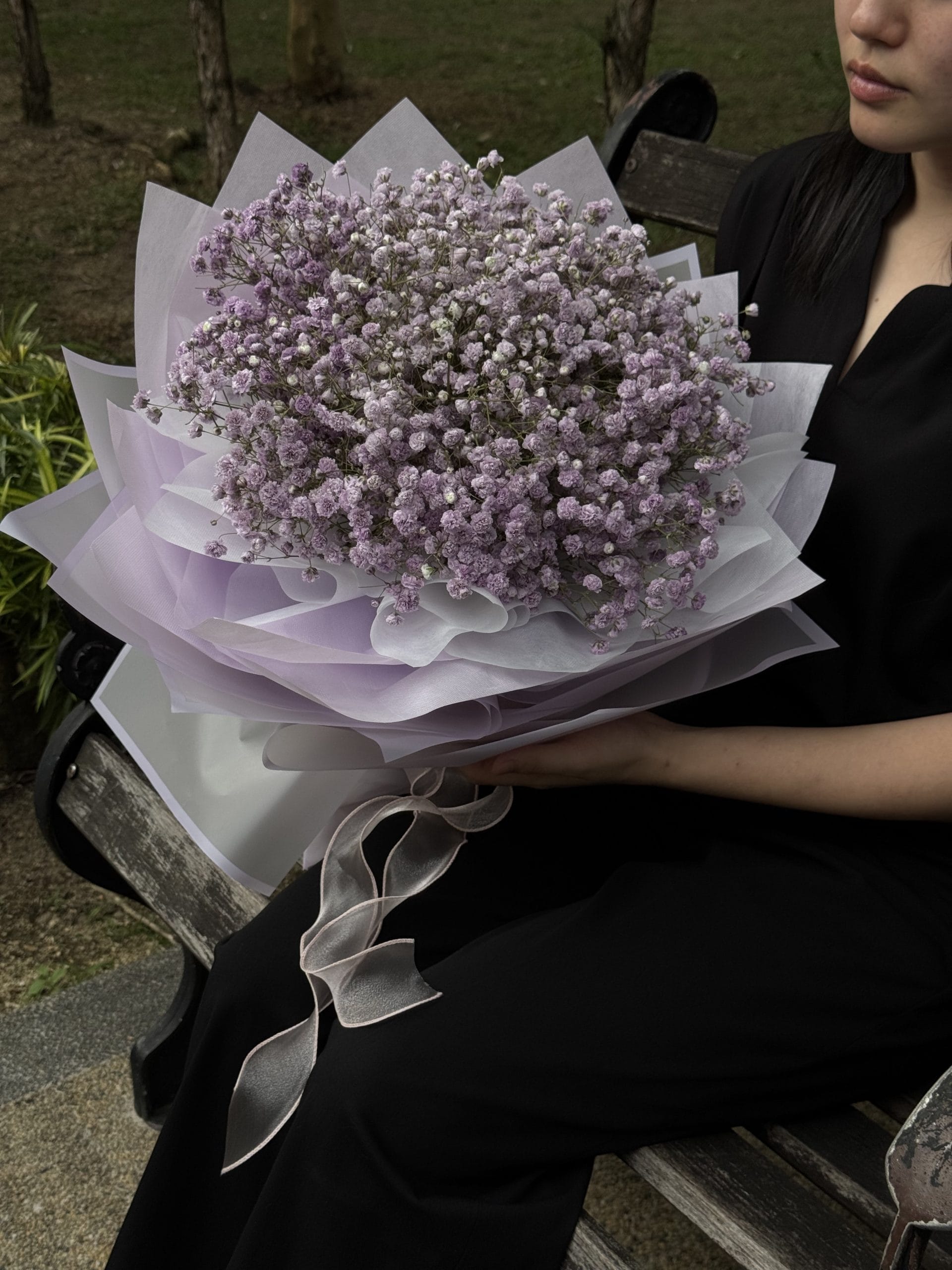 Soft, dreamy, and endlessly romantic, the Love’s Whisper bouquet is a gentle expression of affection and devotion. Featuring a cloud of delicate baby’s breath in your choice of pink, blue, or purple, this bouquet embodies the quiet yet powerful beauty of love. Wrapped in elegant sheer layers to match its hue, this bouquet is the perfect Valentine’s Day gift to symbolize love that is pure, everlasting, and as light as a whispered “I love you.”