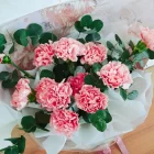 A gentle bouquet design of pink carnation & eucalyptus leaves