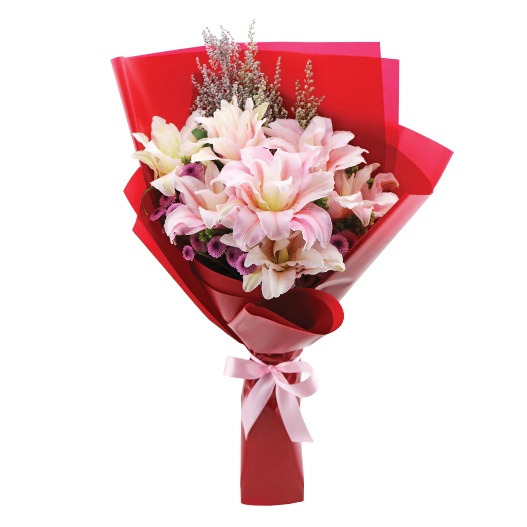 Elegant is beautiful. The Passion displays the graceful Pink Lilies and scented lavender. Irresistibly charming